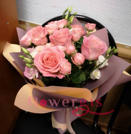 Восхитительно красивый букет из нежных розовых роз и, кустовых роз. Без всяких сомнений вызовет восторг, и бурю эмоций.